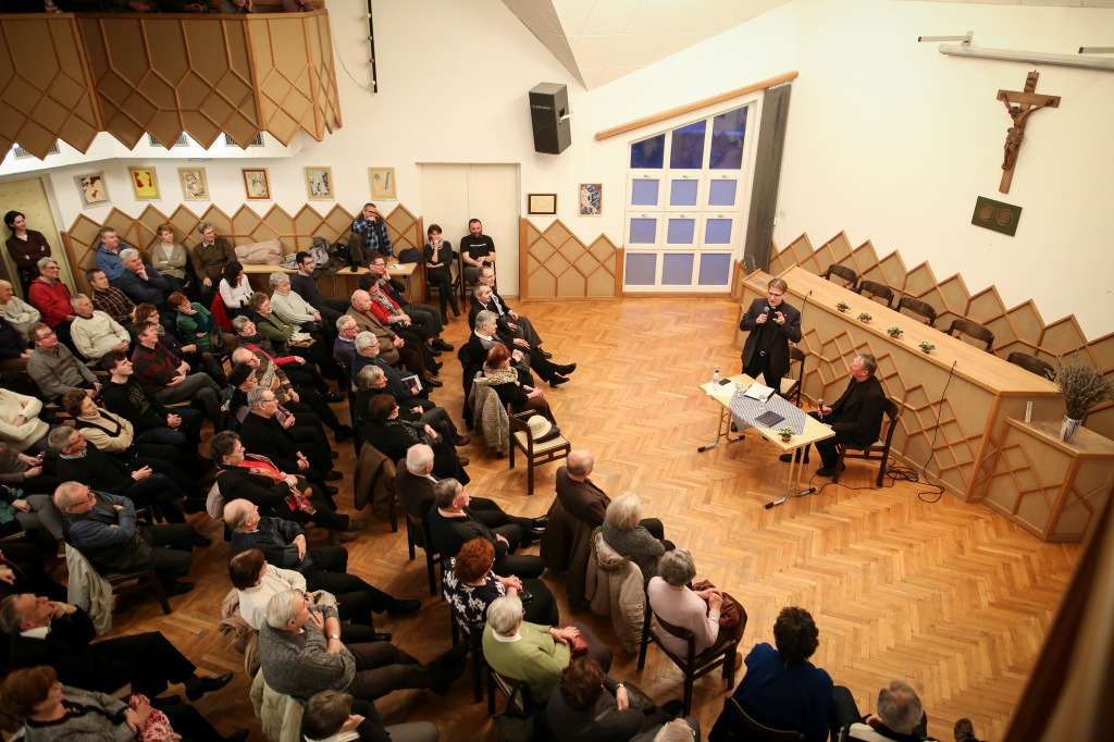 A következő kérdés a menekültek helyzete és a népvándorlás megítélésére vonatkozik. Senki nem maga választja meg, hova születik, csak Jézus tehetett így, és ő az istállót választotta – reagál a püspök. – Ezzel példát mutatott, hogy aki jobb helyre született, segítsen annak, aki rosszabbra. Ahol van ivóvíz, nincs háború, és viszonylagos jólétben élnek az emberek, nem lehet azt mondani a menekülőknek, hogy „maradjatok otthon”. Csak az lehet a kérdés, hogyan segítsünk. A miniszterelnök azt nyilatkozta: azért kell a kerítés, hogy ne az ablakon, hanem az ajtón jöjjenek be hozzánk a menekülők. „Kérdezem: aki az ajtón jön, jönne be, annak segítünk? – tekint a püspök hallgatóságára, majd így folytatja: – Ezt az állapotot sokáig nem lehet fenntartani.” Az egyház életét a tanítás, az imádság és a szeretetgyakorlás hármas egységének kell jellemeznie. A keresztény élet valójában akkor kezdődik, amikor a templomból kilépünk – teszi hozzá.