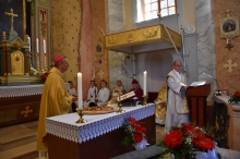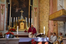 A megyéspüspök, bevezetőjében az Úristentől kapott bölcsességre hívta fel a jelenlévők figyelmét, amelynek köszönhetően az ember megtanult jót tenni. Majd a „Bizony, mondom nektek: ti, akik követtetek engem: a világ megújulásakor, amikor az Emberfia dicsőséges trónjára ül, együtt ültök majd vele tizenkét trónon, hogy ítélkezzetek Izrael tizenkét törzse felett. Sőt mindaz, aki elhagyja értem otthonát, testvéreit, nővéreit, atyját, anyját, gyermekeit vagy földjét, százannyit kap, és elnyeri majd az örök életet.” (Mt. 19, 27-29) evangéliumi részhez kapcsolva szemléltette a 300 éve ide érkezett telepesek hitét. Majd Szent Márton és Nepumuki Szent János közbenjárását is kérve – akiknek tiszteletét a letelepedettek hozták magukkal - fohászkodott az Úristen megbocsátó kegyelméért. Ezt követően megáldotta a felújított oltárt.