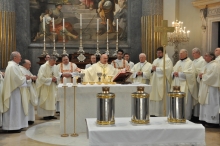 Április 2-án délelőtt tartotta Marton Zsolt a hagyományos olajszentelési szentmisét Vácon, a Nagyboldogasszony-székesegyházban. Az egyházmegye papsága mellett a hívek is szép számban vettek részt az ünnepi szentmisén, amelyen a betegek és a katekumenek olaját, valamint a szent krizmát áldotta meg a főpásztor.