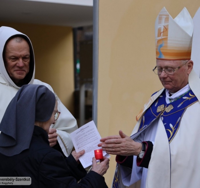 A Váci Egyházmegyében a megszentelt élet napját idén is Mátraverebély - Szentkúton ünnepelték a szerzetesek február 3-án, Gyertyaszentelő Boldogasszony ünnepén. Több éves hagyomány, hogy ilyenkor a Ferences Rend megrendezi a kegyhelyen a szerzetesek zarándoklatát. A szentimiseáldozatot dr. Varga Lajos váci segédpüspök mutatta be dr. Orosz Lóránt kegyhelyigazgató koncelebrálásával ferences és premontrei szerzetesek, klarissza, ciszter és pálos nővérek, valamint ferences szegénygondozó és ferences tanító nővérek körében.A szertartás elején a gyóntató udvarban szentelte meg Varga Lajos püspök a gyertyákat, amelyekkel a zarándoklaton résztvevő szerzetesek ünnepélyesen bevonultak a templomba, majd az oltár elé helyezték a gyertyákat, ezzel is kifejezve életük átadását az Úrnak.