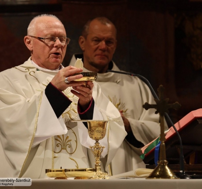 Varga Lajos a napi evangélium kapcsán Jézus hitéletünkben betöltött központi szerepéről elmélkedett. Amikor Jézust bemutatták a templomban, két olyan ember jelenlétében tették, akik már nagyon várták a Megváltót. Az egyik a bölcs Simeon volt, aki hálát adott az Úrnak, hogy megláthatta az üdvösséget, azt, aki Világosságul jött a világba. A másik Anna próféta asszony, aki nem távozott el a templomból, hanem böjtöléssel és imádkozással szolgált éjjel és nappal, és várta, hogy eljöjjön a Megváltó. Ennek a két idős embernek az élete beteljesedett, mert akire vágyakoztak az eljött: látták és felismerték az Üdvözítőt. Hogy van ez a mi életünkben? Erre a kérdésre mindenki megkeresheti a választ imáiban.
