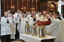 Április 2-án délelőtt tartotta Marton Zsolt a hagyományos olajszentelési szentmisét Vácon, a Nagyboldogasszony-székesegyházban. Az egyházmegye papsága mellett a hívek is szép számban vettek részt az ünnepi szentmisén, amelyen a betegek és a katekumenek olaját, valamint a szent krizmát áldotta meg a főpásztor.