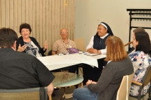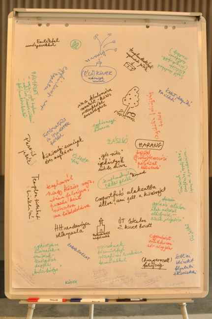 Az ebédszünet lehetőséget adott találkozásokra, tapasztalatok cseréjére és egymás jobban megismerésére. Majd a program World Café-val folytatódott. Ennek a módszernek a célja, hogy összekapcsolja a csoporttagok meglátásait így szélesebb rálátást adjon egy-egy felvetett kérdéshez. Négy témát jártak körül a résztvevők az ima-katekézis témája köré építve: generációk megszólítása, kreatív módszerek a közöségalkotásban, közösségi események szervezése és tervezése, valamint tanúságtételekkel kapcsolatos tapasztalatok. A program zárásaként a World Café asztalfelelősök osztották meg, hogy milyen gondolatok és ötletek születtek náluk.