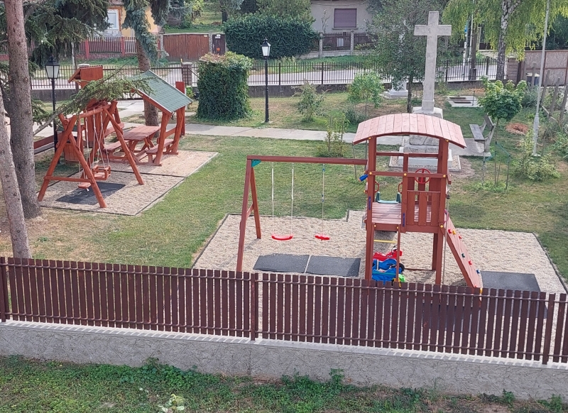 Az úri templom kertjében sok tuja és fenyő száradt el az elmúlt években. A hívek nem nézték tétlenül a pusztulást, hanem elkezdtek rendet rakni, az elhalt fákat kivágni, a területet kitakarítani. Játszóteret álmodtak a felszabaduló részre, hogy a gyerekek a közösségi programok alkalmával örömmel és vidámsággal lehessenek jelen.Ahogyan a templomkert az egyik vállalkozónak és munkatársainak is köszönhetően kezdett rendezetté válni, egyre jobban látszódott, hogy az 1848-as forradalomra emlékeztető öreg feszület milyen rossz állapotban van. Így annak (és egy közeli fiatalabb társának) a felújítása is elkezdődött. Két-kétmillió forintból valósultak meg a játszótér építés és a feszületek felújításának munkái. Sok kétkezi „társadalmi” munkával, sok adománnyal (benne az önkormányzat hozzájárulásával is) segítette a közösség a munkálatokat. A feszület és az alatta álló Mária szobor Zahora András kőszobrász-restaurátor és munkatársainak keze nyomán újult meg.