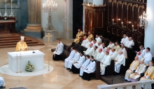 A bíboros főpásztor ezt követően méltatta az 1974-ben Vácon pappá szentelt Varga Lajos papi szolgálatát, amely során számos ifjúsági és családos közösséggel foglalkozott, Pásztón templomot és közösségi házat is épített. Kiemelte, hogy püspöki titkárként és irodaigazgatóként az egyházkormányzatban tíz éven át végzett szolgálatát, valamint oktatói és tudományos tevékenységét.