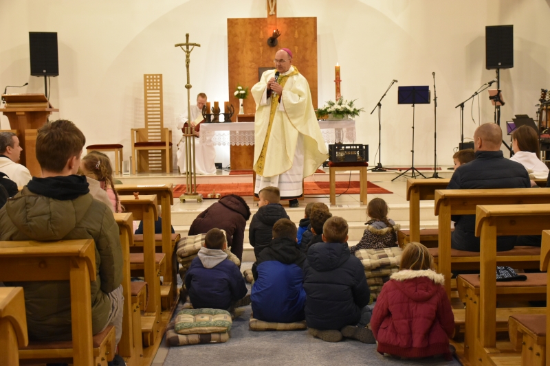 November 9-én és 10-én Marton Zsolt váci megyéspüspököt, az MKPK családreferensét köszönthettük. Pénteken délután a kisgyermekes családoknak mutatott be szentmisét, amelyben sok szemléltető eszközt használva világította meg a gyermekeknek Szent Imre herceg életét. A szentmise után a fiataloknak ifjúsági találkozó keretében lehetőségük volt a püspök úrral találkozni, aki a magyar ifjúság védőszentjéről, az ő tisztaságáról fogalmazott meg gondolatokat. A napot zenés dicsőítő szentségimádás zárta, a fiatalok mellett minden korosztály együtt énekelt, imádkozott.