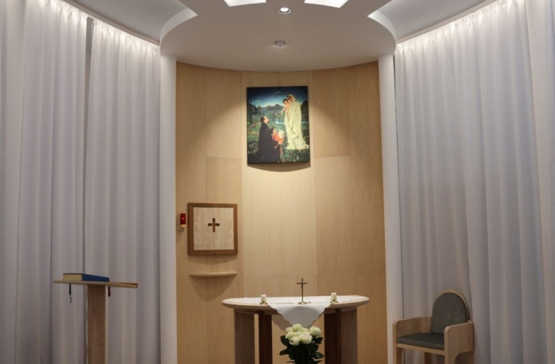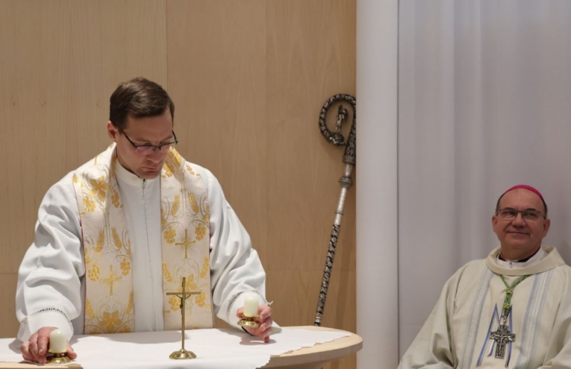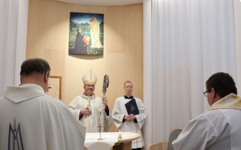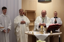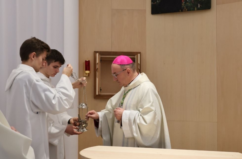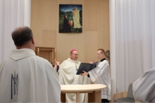 "A kápolna legyen az iskola szívében, miként Jézust is a szívünkben kell hordoznunk!" A 2024-2025-ös tanév nevelőtestületi záróértekezletén hangzott el ez a felhívás Vass Bálint atyától. A közel egy évtizedes vágy 2025. december 8-án, a Boldogságos Szűz Mária Szeplőtelen Fogantatásának ünnepén beteljesülhetett: Marton Zsolt megyéspüspök felszentelte a Váci Piarista Gimnázium kápolnáját. Méltó helyet kapott iskolánk pasztorációs élete, lehetőséget teremtve diáknak, tanárnak, iskolai dolgozónak a hétköznapi imaéletre, hálaadásra, elcsendesedésre, köztük az első péntekekre szervezett Oratio Continua-ra, a tanórák alatt tartott szentségimádásra.