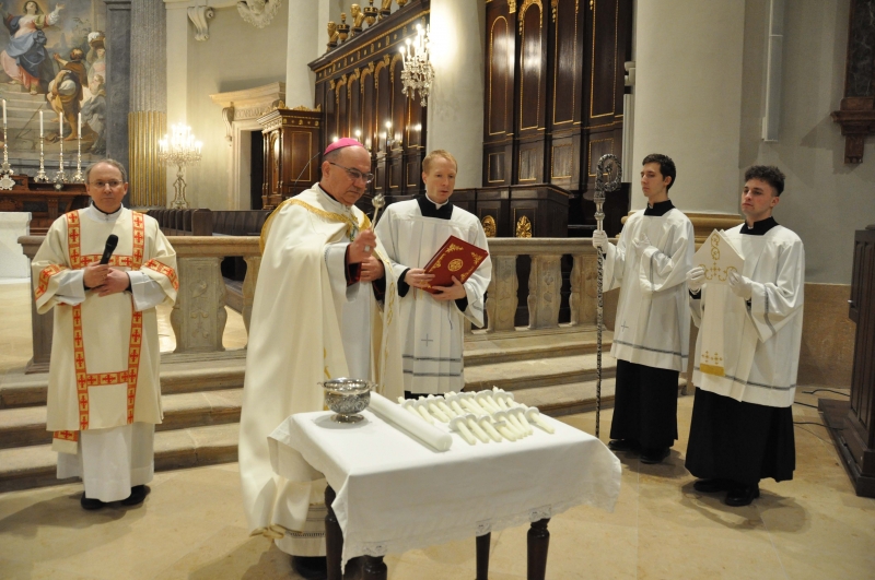 Ünnepi szentmisét mutatott be Marton Zsolt megyéspüspök a váci Nagyboldogasszony-székesegyházban Urunk bemutatása, népies nevén Gyertyaszentelő Boldogasszony napján.Jézus születése után 40 nappal, Urunk bemutatása ünnepén arra emlékezünk, hogy Szűz Mária és Szent József a zsidó hagyományt követve bemutatta a templomban a gyermek Jézust. Az elsőszülött gyermek bemutatásának szokása és szimbolikus átadása az Örökkévalónak az ószövetségi időkben gyökerezik. A zsidó nép ezáltal fejezte ki háláját azért, mert megmenekültek Egyiptomból, és az utolsó csapás, az elsőszülöttek halála, nem sújtotta az ő gyermekeiket. Ezt a hagyományt követte Mária és József is, amikor bemutatták a Gyermeket. A Kisdeddel így az ószövetség teljes, voltaképpen hívő népe találkozott a két szent öreg, Simeon és Anna személyében.