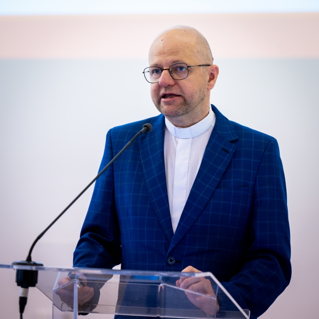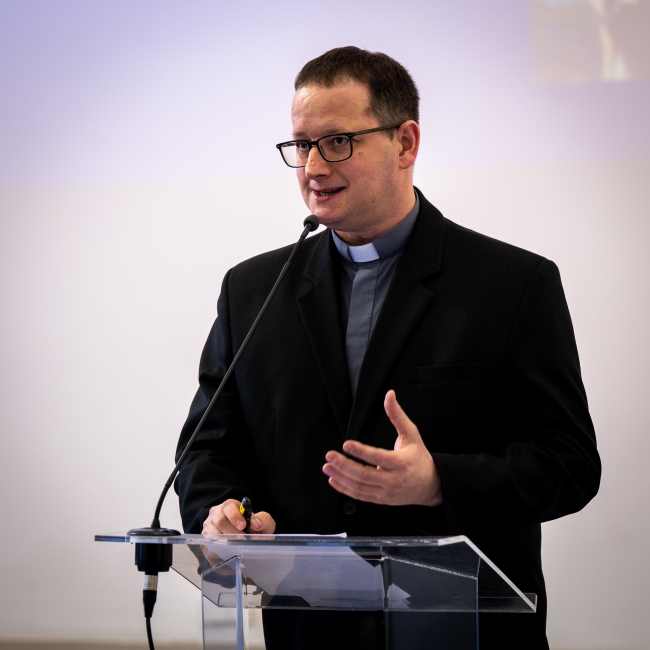 Dr. Varga Péter András filozófus, az ELTE HTK Filozófiai Kutatóintézetének tudományos főmunkatársa a II. vatikáni zsinat dokumentumait és a Szent VI. Pál pápa Ecclesiam suam enciklikáját értelmezte. Elmondta, 60 év távlatából visszatekintve a zsinatra, a leginkább szembetűnő különbség az, hogy a zsinat idején még szinte teljesen keresztények voltak Nyugat-Európa társadalmai. Az időközben lezajlott változás különösen látványos a zsinati teológiában vezető szerepet vállaló Németország esetében, ahol 2021 óta a keresztény egyházak kisebbségi helyzetben vannak, ugyanakkor megjelent az indifferens ateizmus.