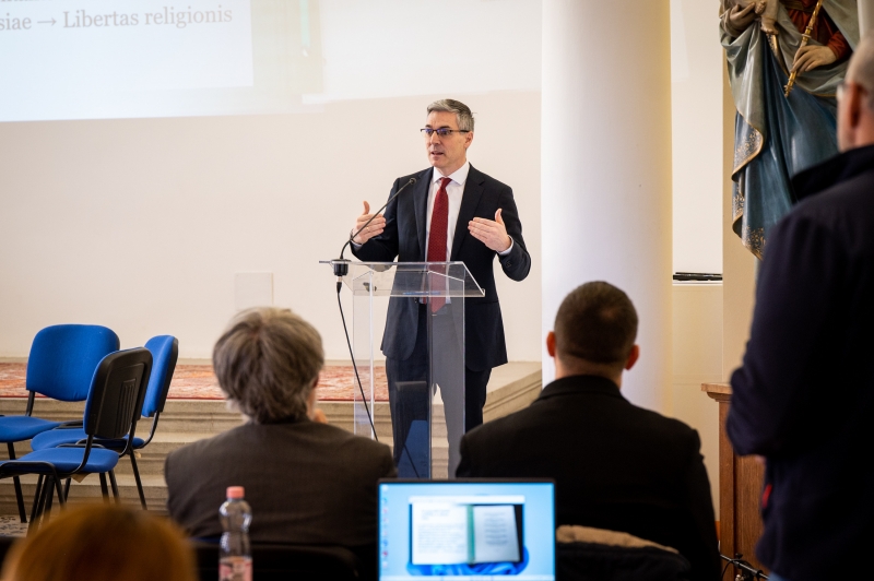 Dr. Fejérdy András történész, az ELTE HTK Történettudományi Kutatóintézet tudományos főmunkatársa, igazgatóhelyettese, a vatikáni Ostpolitik történeti és eszmei alapjait tekintette át. Rámutatott, hogy a II. Vatikáni Zsinat nemcsak teológiai, hanem diplomáciai értelemben is fordulópontot jelentett: a szocialista országok részéről is megmutatkozott bizonyos tárgyalási készség, amely 1963-tól konkrét kétoldalú egyeztetésekhez vezetett. A zsinat utáni időszakban a Szentszék nemzetközi mozgástere megerősödött, és a konkordátumpolitikában mind nagyobb szerepet kapott az általános vallásszabadság szorgalmazása.