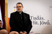 Dr. Lovassy Attila plébános, az Apor Vilmos Katolikus Főiskola tanára, ismertetett néhány teológiai modellt, hogy mi lehet a vallások szerepe Isten üdvözítő tervében, és ebben a kereszténység és a katolikus Egyház milyen helyet foglal el. Majd a Szentírástól kezdve a tanítóhivatali megnyilatkozásokon keresztül bemutatta az Egyház tanításának két végpontját, Krisztus egyetlen és egyetemes üdvözítő voltát, valamint azokat az Egyház gondolkodásában megjelenő kivételes helyzeteket, amelyek esetében az üdvösségre való eljutás a látható és intézményes Egyház keretein kívül is megtörténhet, de mindig Krisztuson és az Egyházán keresztül.