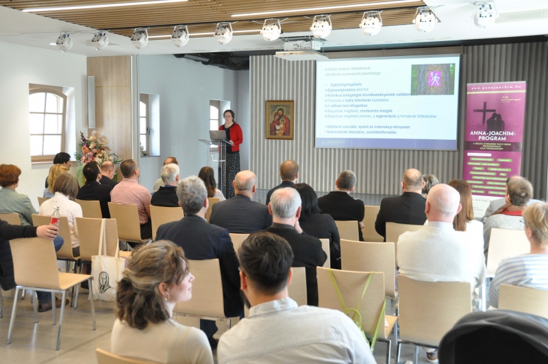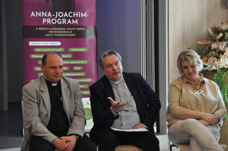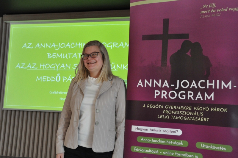 A meddőség sajnos sok házaspárt érint, ezért a családreferens találkozó is kiemelten foglalkozott a témával az Apor Vilmos Katolikus Főiskola Anna-Joachim programjának bemutatásán keresztül. Ennek keretében a régóta gyermekre vágyó párok professzionális lelki támogatásáért dolgoznak, átfogó, intenzív pszichológiai és mentálhigiénés segítséget kínálva számukra. A keresztény szellemiséggel és értékrenddel harmonizáló terápiás jellegű módszereket gyűjtik egy csokorba egy programsorozat keretében. Homokiné Hollósi Cecília, a program szakmai vezetője ismertette a meddőségi adatokat, beszélt a meddőségi krízishelyzetről, a meddősség következtében elinduló pszichés folyamatokról, bioetikai kérdésekről, a férfiak és nők eltérő reakcióiról. Az Anna-Joachim program a meddőségi krízisben élő házasságok megerősítésre törekszik, ezért olyan házaspárokból álló csoportokkal dolgoznak együtt, amelyek később önsegítő csoportként működhetnek tovább. Hangsúlyozta, a lombik-kezelést az Egyház etikai szempontok miatt nem támogatja, ezért nem javasolják keresztény házaspároknak. Az előadás második felében Homokiné Hollósi Cecília személyes tanúságtételét osztotta meg az örökbefogadáshoz vezető útról.