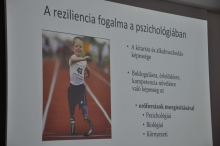 Ismertette a reziliencia fogalmát, amely nem más, mint az ember rugalmas, újratervezésre alkalmas képessége, amely segítséget nyújt a váratlan helyzetekhez való alkalmazkodásban. A reziliens működés kialakulása dinamikus folyamat, és a reziliencia képessége fejleszthető, mert nem egyetlen kompetencia. Részletesen tárgyalta a reziliens személyre jellemző képességeket, mint az érzelmek szabályozását, a rugalmas gondolkodást, az empátiát, a nyitottságot, a realista optimizmust. Ezek a kompetenciák igazából egymásra épülnek, és születésünktől kezdve alakulnak ki.