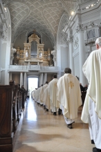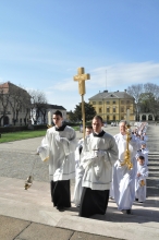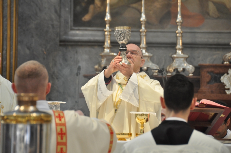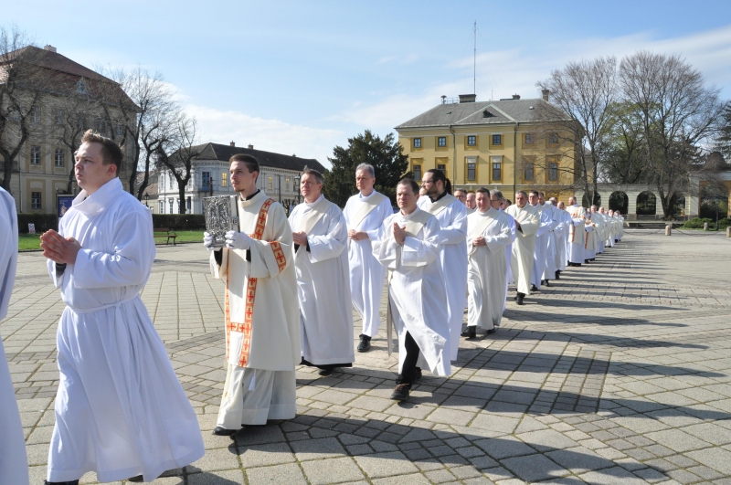 A váci Nagyboldogasszony-székesegyházban tartott szentmisén ezúttal több mint hetven egyházmegyei szolgálatban tevékenykedő pap és szerzetes gyűlt össze a megyés főpásztor körül. A szertartáson jelen voltak dr. Beer Miklós és dr. Varga Lajos nyugalmazott püspökök, valamint Balogh Péter Piusz premontrei gödöllői apát. Velük együtt szolgált az egyházmegye több mint húsz állandó diakónusa, lektorok és akolitusok. A váci hívek is szép számban vettek részt a szertartáson, amelyre a kedvező időjárás lehetővé tette a nagy bevonulást a püspöki palotától a székesegyházig vezető úton.