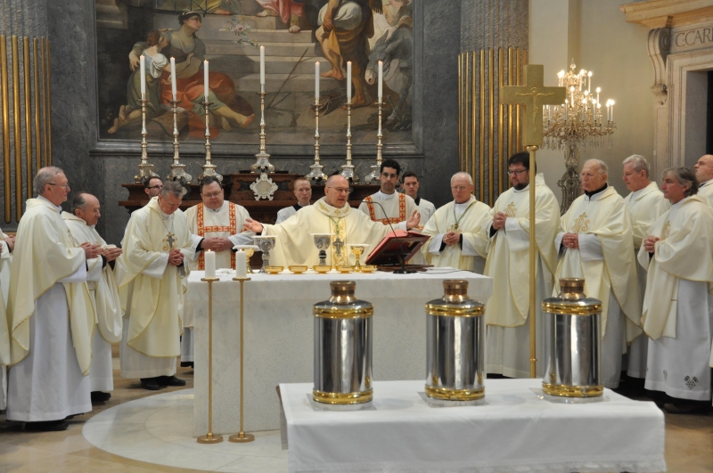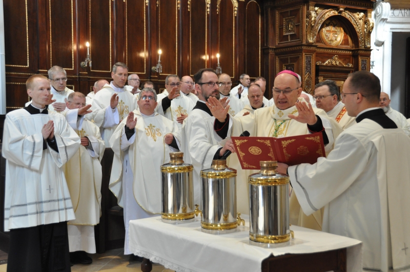 Április 2-án délelőtt tartotta Marton Zsolt a hagyományos olajszentelési szentmisét Vácon, a Nagyboldogasszony-székesegyházban. Az egyházmegye papsága mellett a hívek is szép számban vettek részt az ünnepi szentmisén, amelyen a betegek és a katekumenek olaját, valamint a szent krizmát áldotta meg a főpásztor.A Szent Három Nap kezdetén minden egyházmegyében összegyűlik a papság, hogy megújítsák papi fogadalmukat. Az ünnepi szentmisén áldja meg a megyés főpásztor azokat az olajokat, amelyeket az év során a szentségek kiszolgáltatásához használnak: a betegek olaját, amellyel a betegek kenetét adják fel, a katekumenek olaját, amellyel a keresztelendők homlokát kenik meg és a krizmát, amelyet a keresztség, bérmálás, egyházi rend kiszolgáltatásakor, illetve templomszenteléskor használnak.
