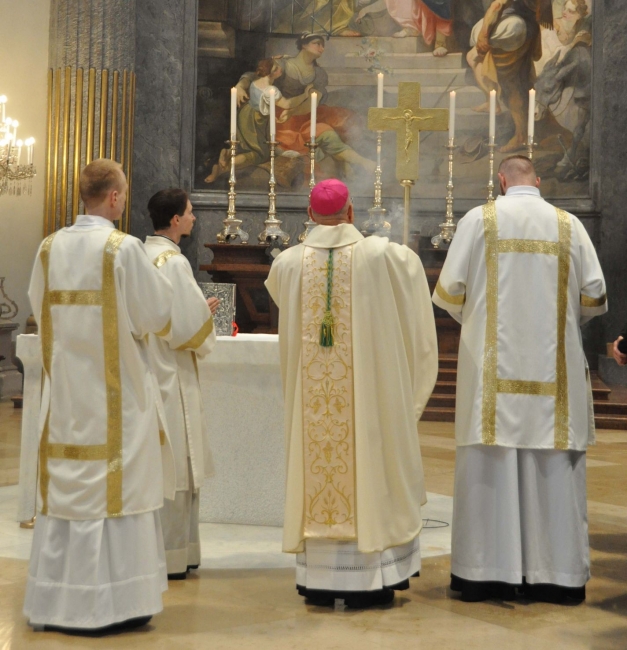 A szentmisén a zenei szolgálatot a Váci Székesegyházi Kórus férfikara végezte Varga László karnagy vezényletével.