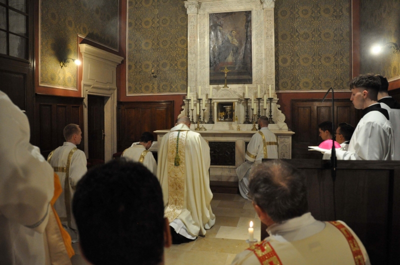A nagycsütörtök esti liturgiában az utolsó vacsora felidézésével az eucharisztia alapítására emlékezünk, amikor Jézus maga köré gyűjtötte tanítványait. Az ünnepi szentmisét Marton Zsolt megyéspüspök mutatta be a Nagyboldogasszony-székesegyházban. Az asszisztenciát a Váci Egyházmegye szeminaristái biztosították.Elkezdődött a szent három nap, felhangzott a dicsőség, megszólaltak a csengők, aztán minden elcsendesült. A szentírási olvasmányok felidézték az egyiptomi kivonulás éjszakáját, amikor az angyal megkímélte az izraeliták házait, mert a bárány vérével megjelölték az ajtófélfákat. Az evangéliumban pedig azt hallottuk, hogyan mosta meg Jézus tanítványainak lábát. Az eucharisztia ünneplésének legősibb leírása hangzott el a szentleckében, amikor Jézus apostolaira bízta önmagát, ahogyan ő tette, úgy tegyék jelenvalóvá minden szentmisében.