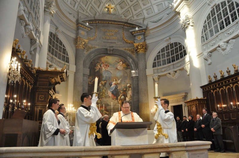 Marton Zsolt megyéspüspök a váci Nagyboldogasszony-székesegyházban mutatta be a nagyszombati húsvéti vigília szertartását, amelyen a Váci Egyházmegye szeminaristái biztosították az asszisztenciát. A főpásztor szentbeszédében a Római levél gondolatait emelte ki a keresztségben új életre támadt emberről hangsúlyossá téve ezúttal a húsvéti szertartásban megújított keresztségi fogadalmakat.