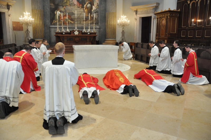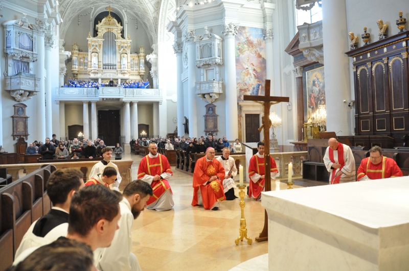 Nagypéntek az egyházi év legcsendesebb napja: Jézus elítélésének, keresztútjának, halálának és temetésének napja. Az Egyház – ősrégi hagyomány alapján – ezen és a következő napon egyáltalán nem mutat be szentmiseáldozatot. Arra a napra emlékezünk, amikor maga az örök Főpap mutatta be áldozatát a kereszt oltárán. A Jézust jelképző oltár teljesen dísztelen: nincsen rajta sem kereszt, sem terítő, sem gyertya. A nagypénteki szertartást Marton Zsolt megyéspüspök vezette a váci Nagyboldogasszony-székesegyházban. Az asszisztenciát a Váci Egyházmegye szeminaristái biztosították.A szertartás kezdetén Marton Zsolt püspök piros miseruhában, némán vonult az oltárhoz a szeminaristákkal, ministránsokkal, diakónusokkal, majd leborultak az oltár előtt.