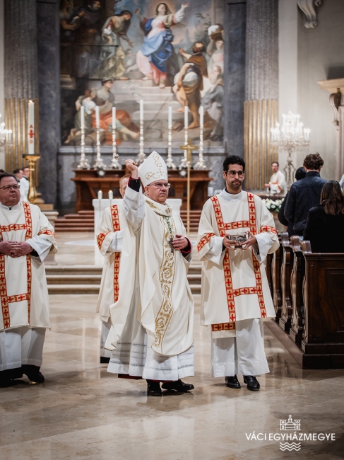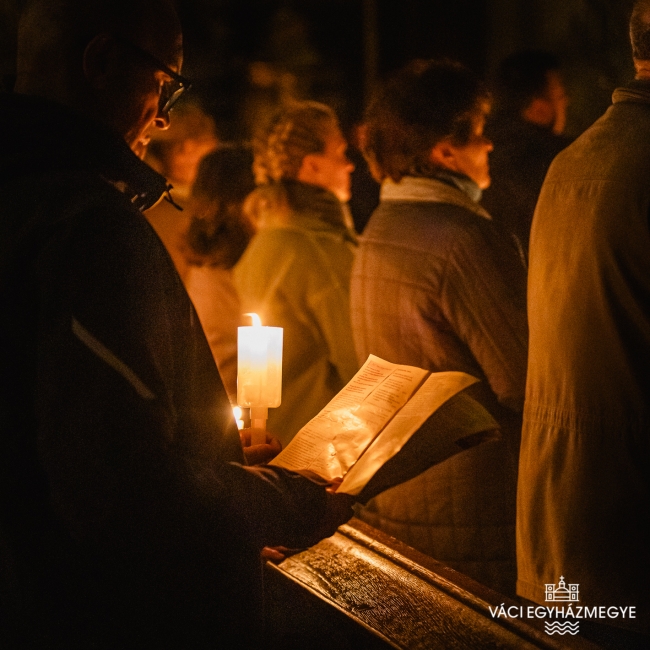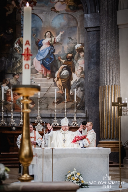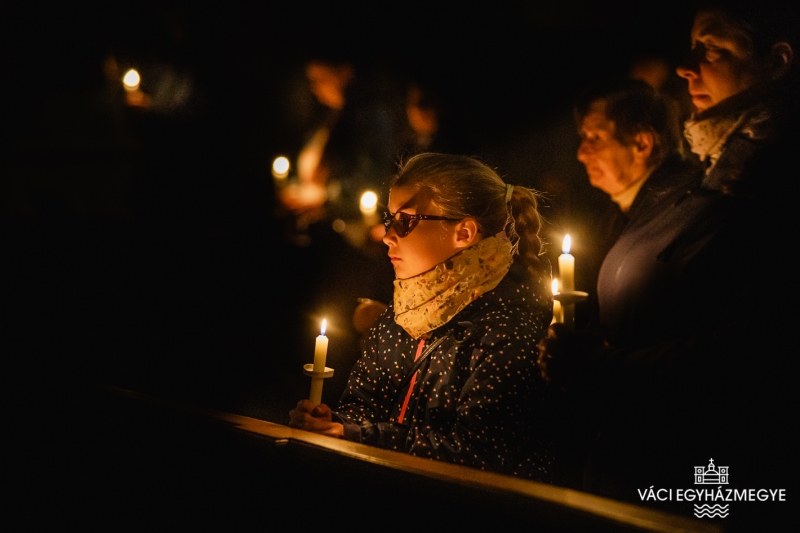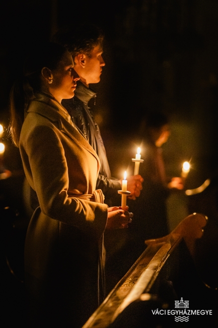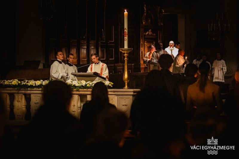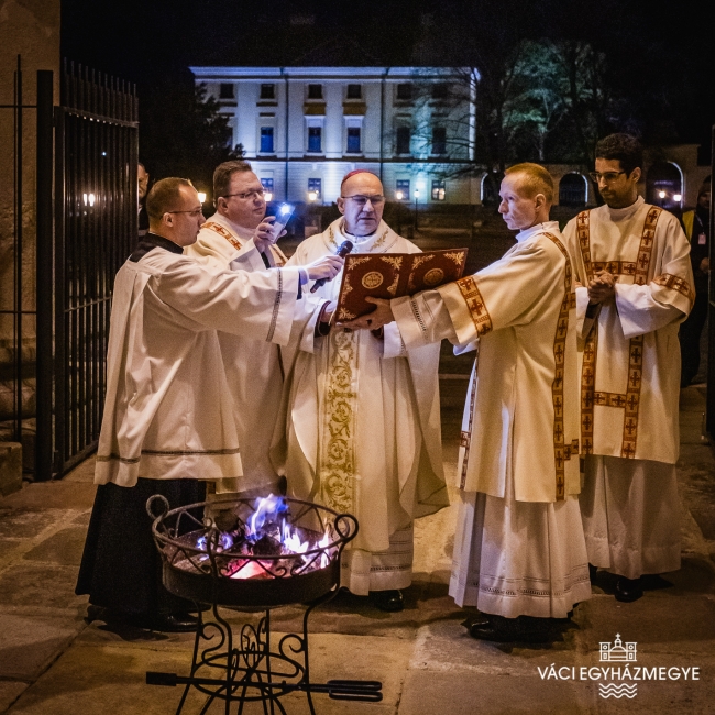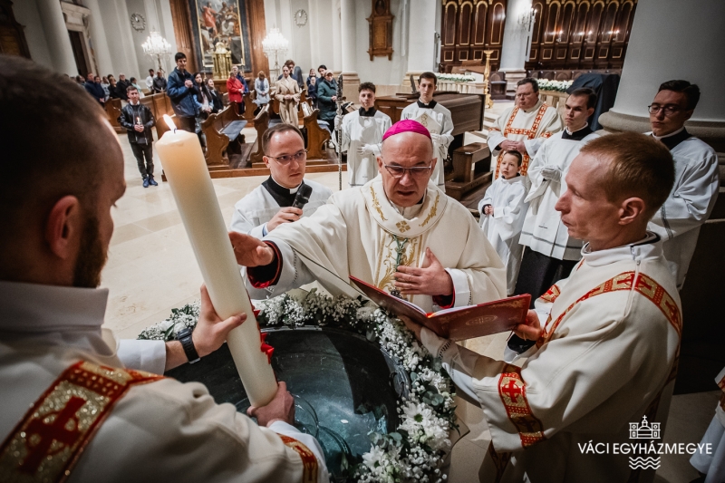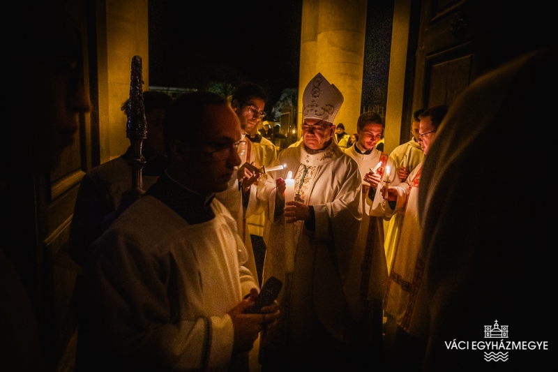 Marton Zsolt megyéspüspök a váci Nagyboldogasszony-székesegyházban mutatta be a nagyszombati húsvéti vigília szertartását, amelyen a Váci Egyházmegye szeminaristái biztosították az asszisztenciát. A főpásztor szentbeszédében a Római levél gondolatait emelte ki a keresztségben új életre támadt emberről hangsúlyossá téve ezúttal a húsvéti szertartásban megújított keresztségi fogadalmakat.Húsvét a kereszténység legnagyobb ünnepe, nagyszombat éjszakáján az egyház talán legszebb ünneplése jeleníti meg a szent titkokat. A liturgia szimbólumaiban megjelenik a fény és a sötétség, a tűz és a víz, hogy együtt magasztalják a feltámadott Krisztust, aki legyőzte a sötétséget, a bűnt és a halált. A liturgia sötétben kezdődik, utalva arra a sötétségre, amely a világra borult Krisztus halála után, amikor úgy látszott, hogy a halál legyőzte az életet, a bűn legyőzte Krisztust. Ebben a sötétben gyullad meg a remény: a feltámadt Krisztus fénye.