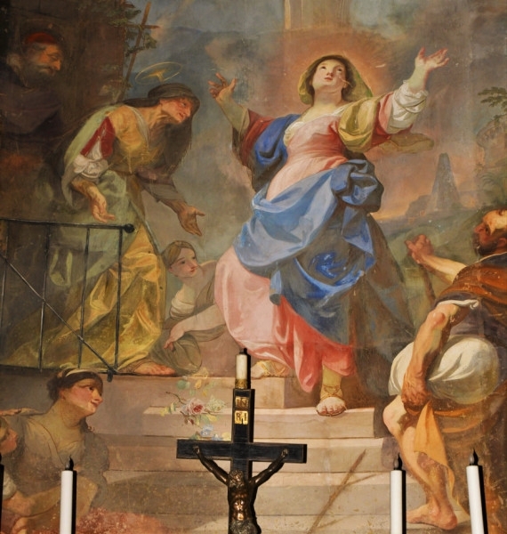 A képen a váci Nagyboldogasszony-székesegyház főoltárképének egy része látható.